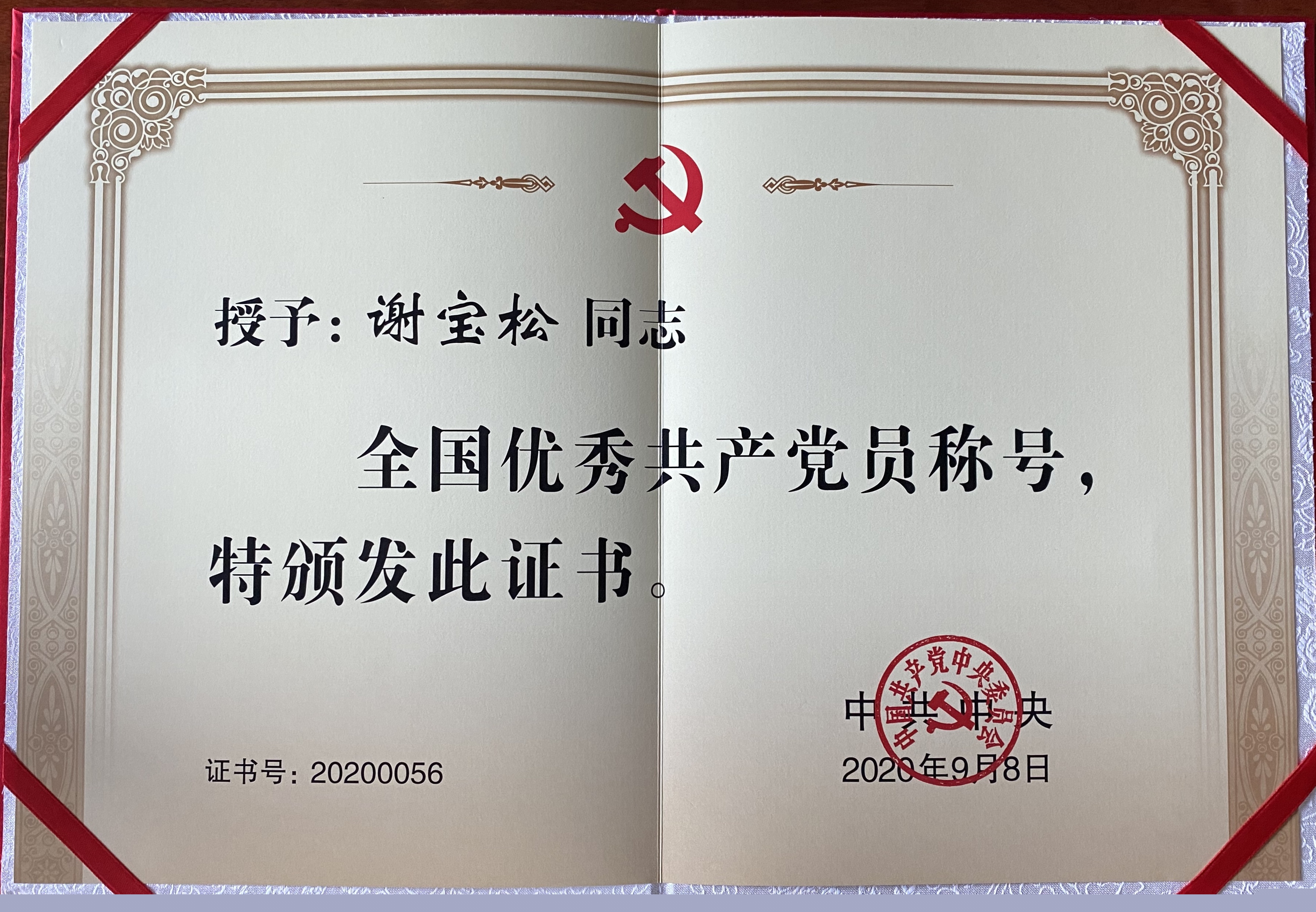 荣获“全国优秀共产党员”称号