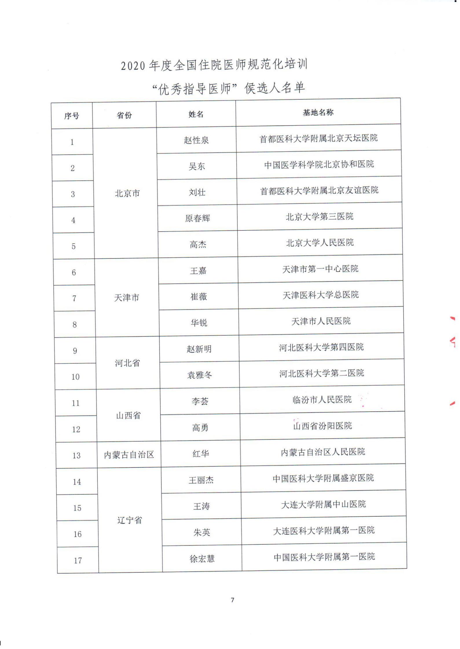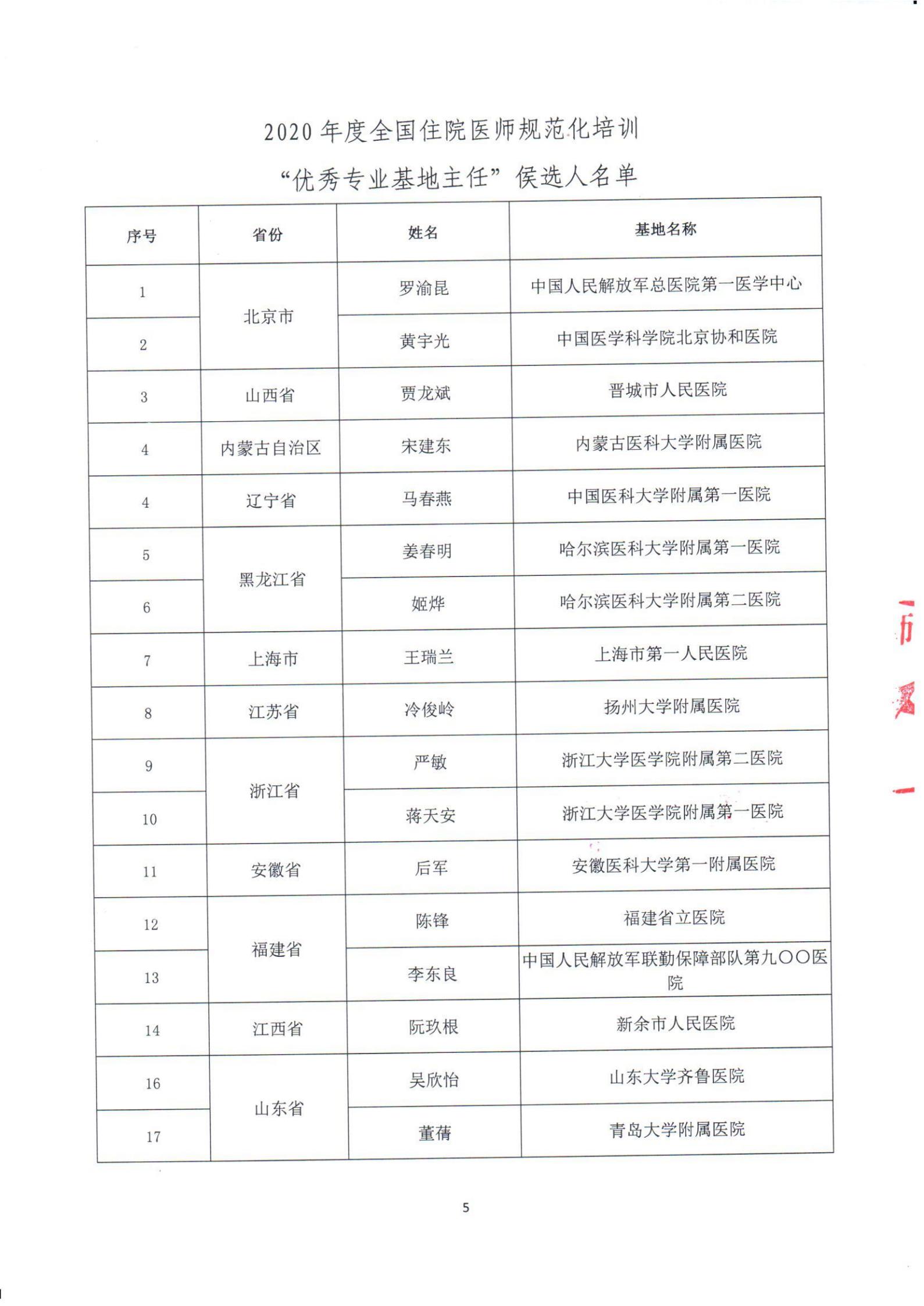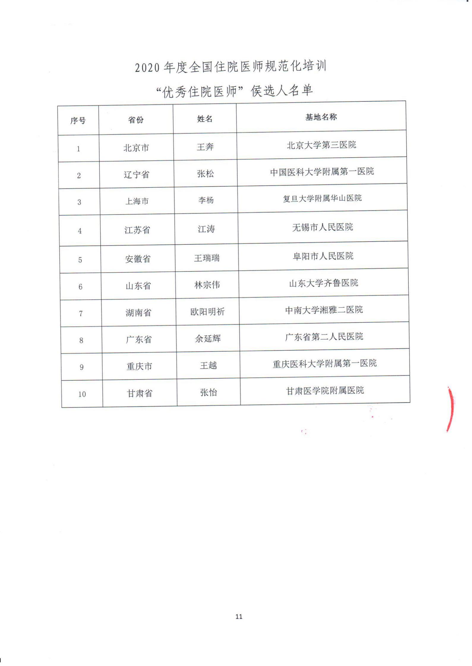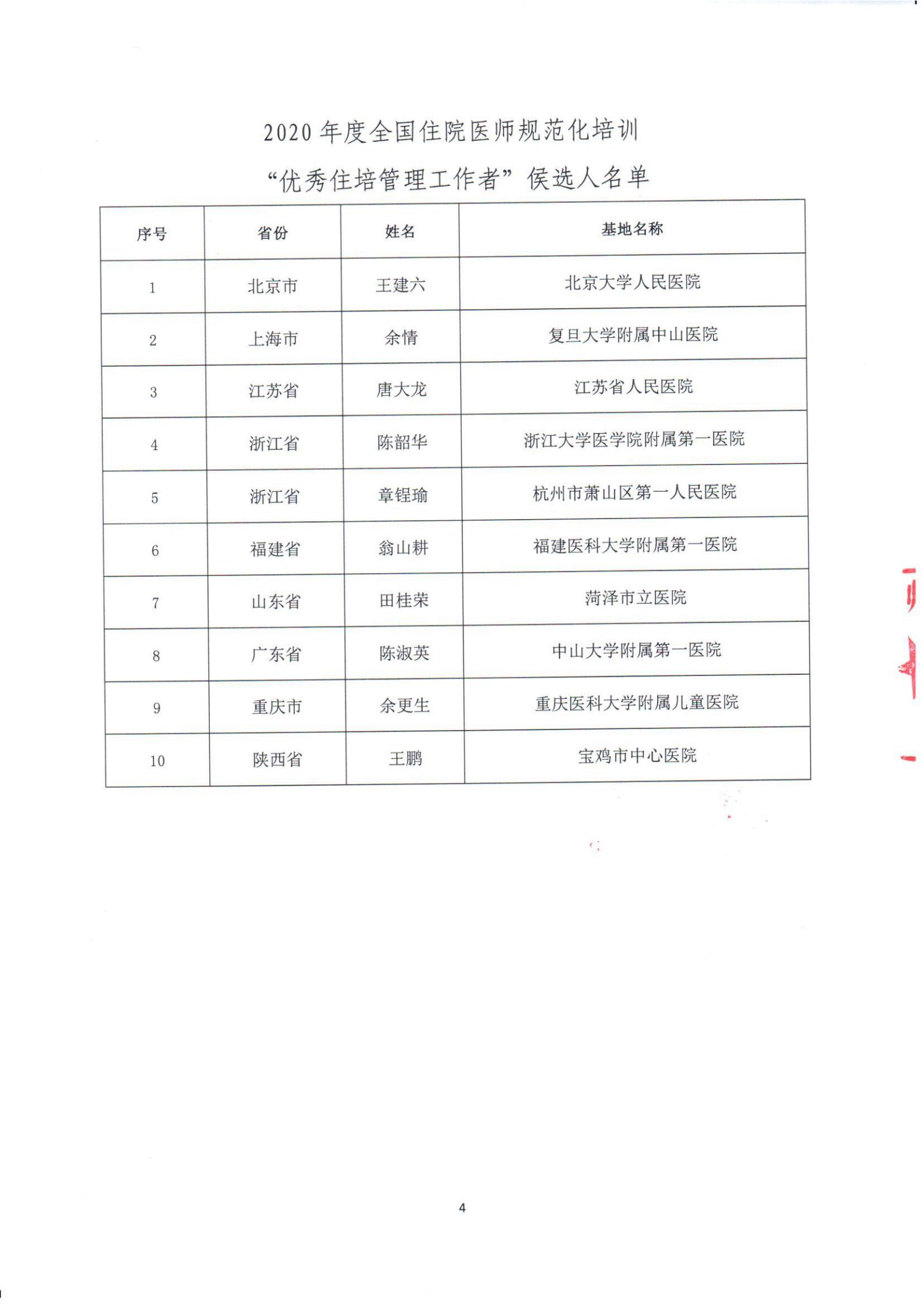 转发中国医师协会“关于表彰2020年度全国住院医师规范化培训“五个优秀”的决定”