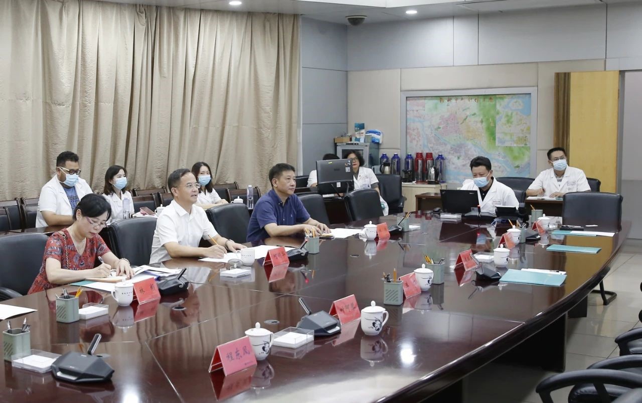 7月16日,福建医科大学党委书记何明华、副校长林旭、科技处处长林频一行莅临我院,进行临床教学、医学科研等方面工作调研。院领导及科研处、继教办和教学办相关负责人参加调研座谈会。