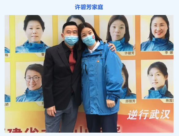 妻子许碧芳为泌尿外科副护士长,丈夫方闻为重症医学四科副主任医师。作为中共党员,夫妻俩在医院组建援鄂医疗队时都第一时间报了名。许碧芳在请战书中写到:“我本人强烈志愿支援湖北抗击疫情,我在ICU工作了二十四年多,积累了丰富的重症护理经验......”2月13日,她作为福建省立医院援鄂医疗队队员,启程奔赴武汉。
