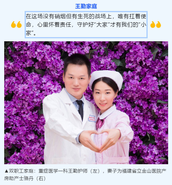 家是最小国,国是千万家。在抗击新冠肺炎疫情的战斗中,很多人尽己所能、默默奉献,坚守在疫情防控一线。他们中有医生、有护士,他们同时也是丈夫、是妻子、是父母、是子女,他们用舍小家为大家的实际行动,汇聚着打赢疫情防控阻击战的强大力量。近期,福建省立医院、省立金山医院大家庭里有22个小家庭陆续获评全国、福建省抗疫最美家庭。下面,让我们一起走进身边的抗疫一线“最美家庭”,见证疫情防控中的暖心力量。