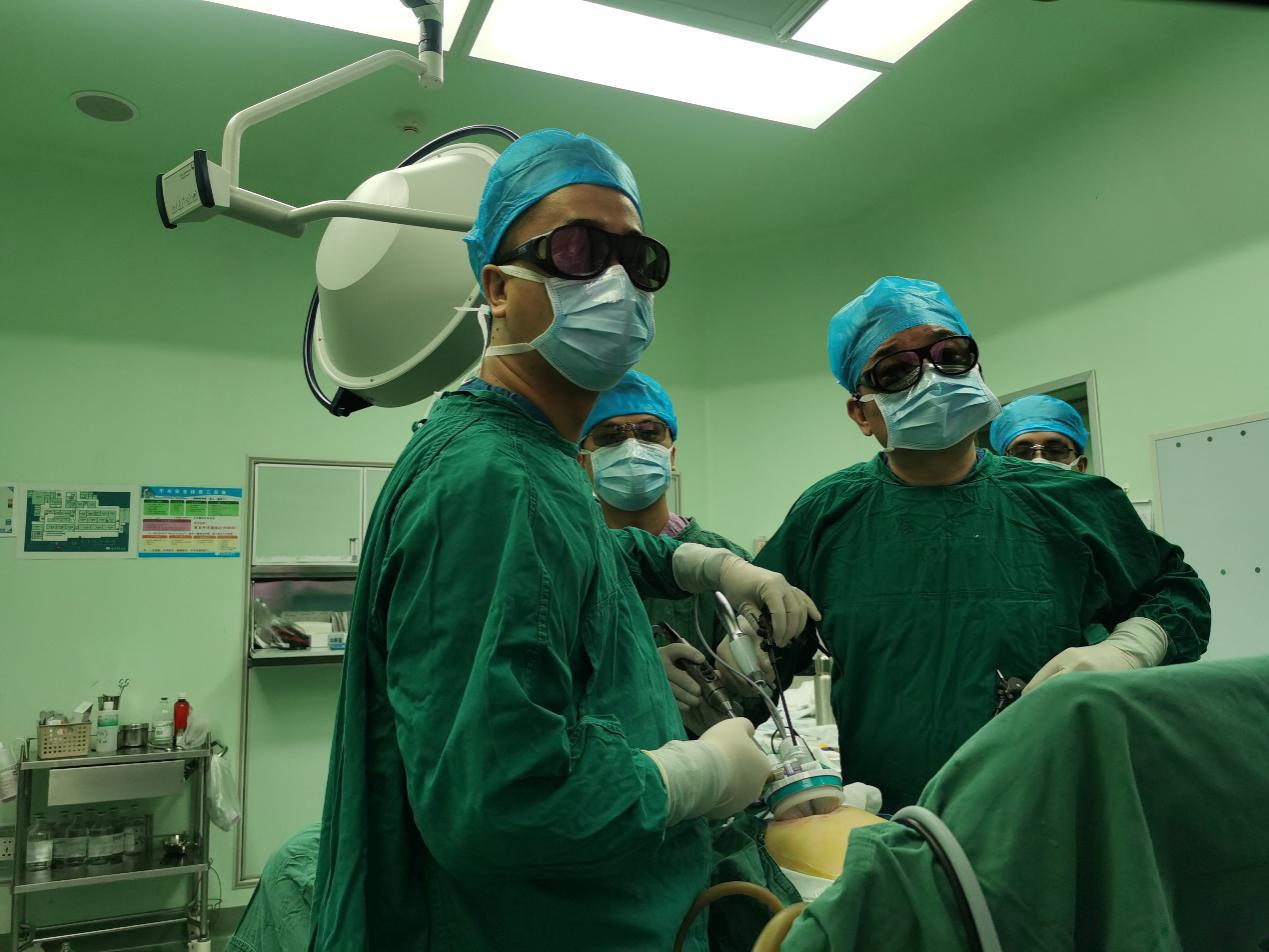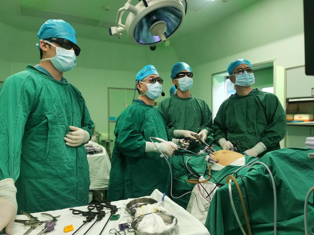 ▲黄良祥教授进行“腹腔镜下超低位直肠癌根治术”