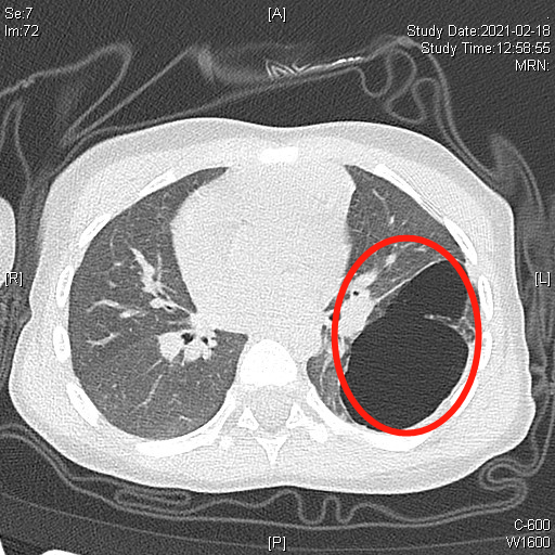 晗晗出生后最初没有明显症状,近期,她突然咳嗽咳痰加剧,在当地医院检查肺部CT发现左肺囊性病灶较刚出生时增大了不少,有3.8×6.4×5.6cm,相当于一个鸡蛋大小。