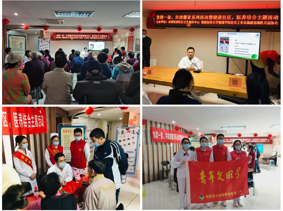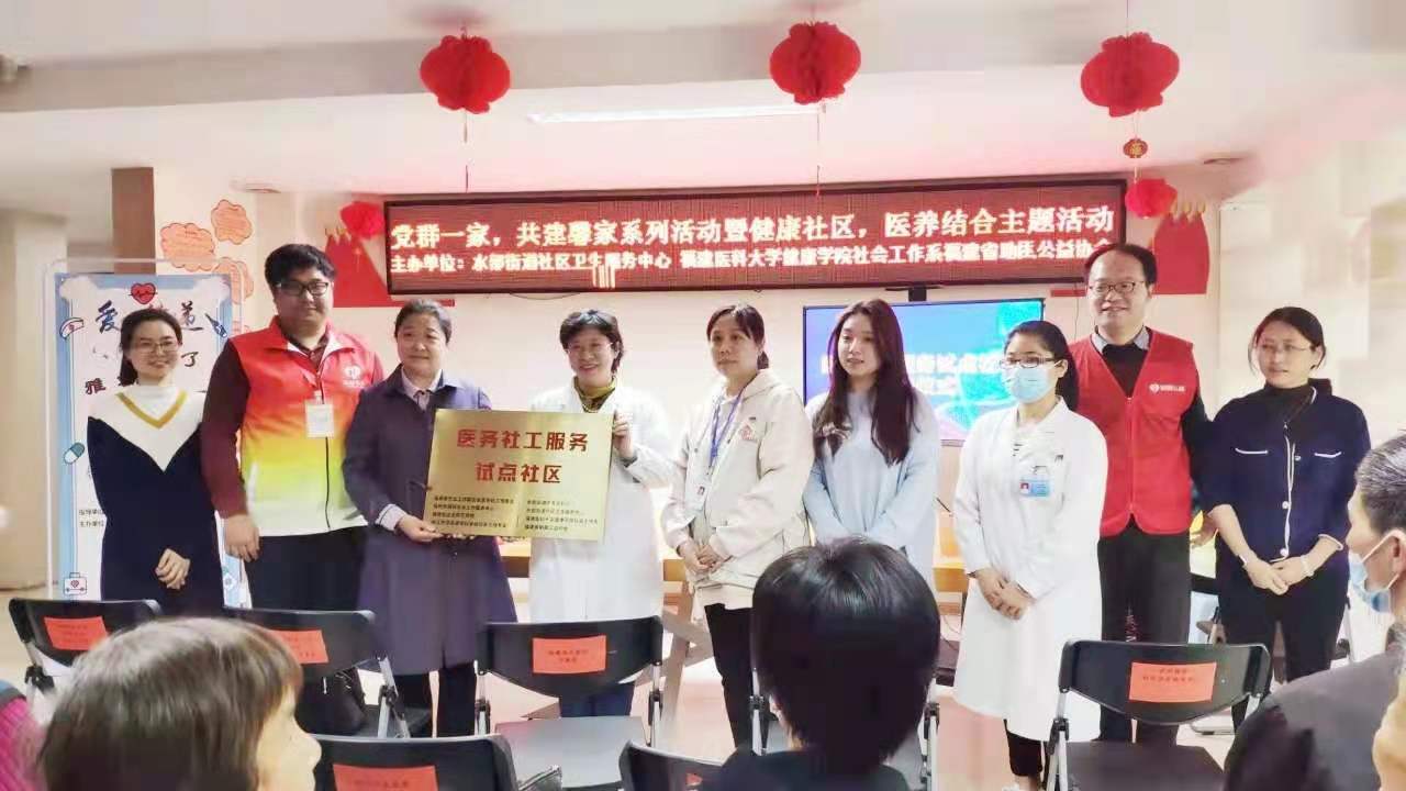 为进一步满足社区老年患者多层次、多样化、全方位的健康需求,提高社区患者生命质量,促进医疗合理利用及社会的文明进步与发展。3月25日,福州首个医务社工服务试点社区落户福州市水部街道乐天泉社区,我院医务社工服务站、宁养院联合各青年文明号集体开展“健康社区,医养结合”项目授牌及义诊主题活动,为居民提供合适的健康服务和社会服务,满足社区居民需求。