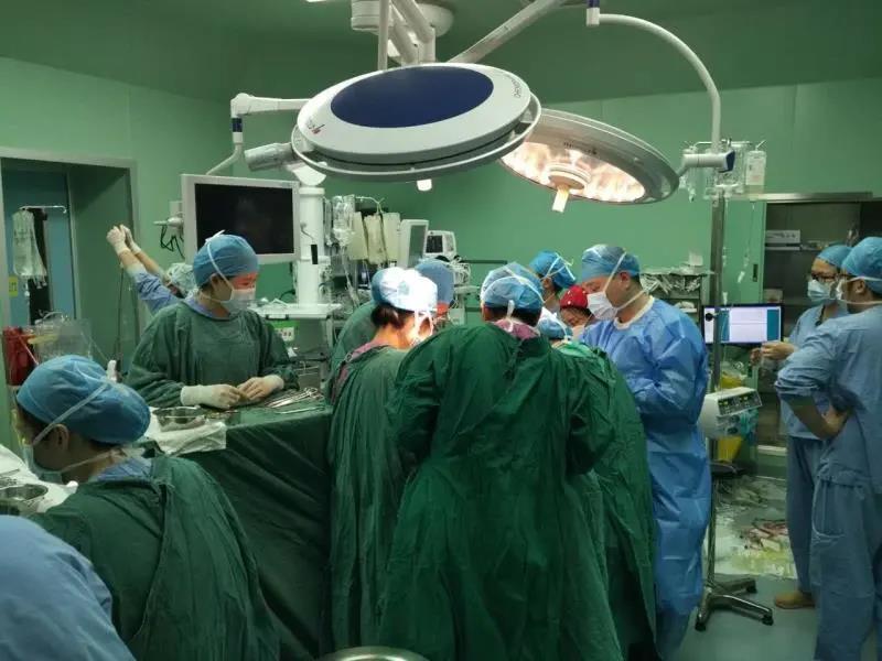 术中,妇产科杨茵、辛长征快速剖宫产,并切除了全子宫,再由泌尿外科医生切除了部分膀胱,行膀胱重建缝合术。整场手术进行了7小时,术中出血达到了2万毫升,相当于人全身的血液换了4~5遍!所幸产妇平安分娩出一名男婴,顺利渡过难关。