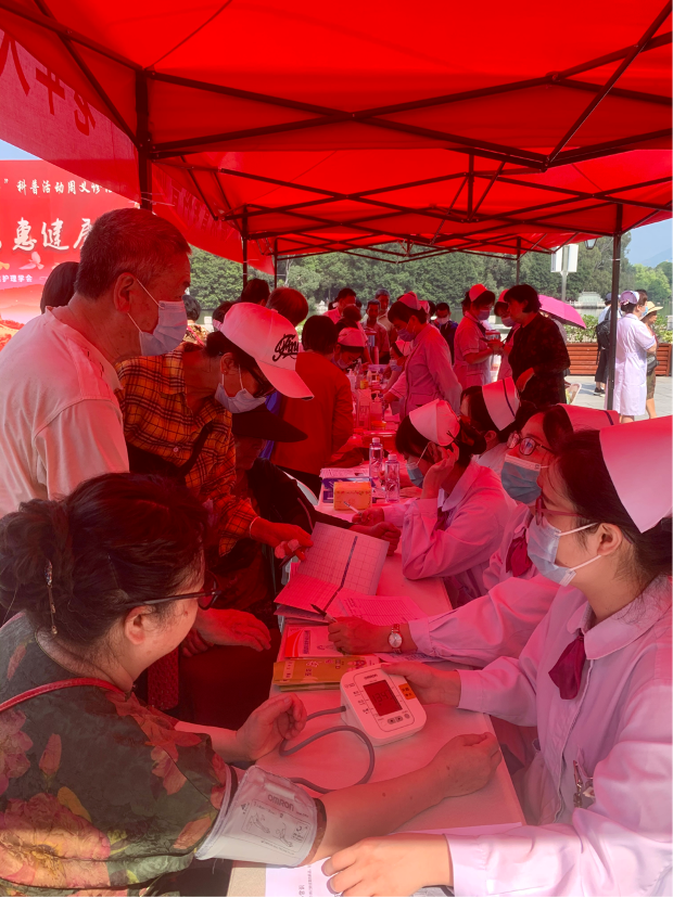 我院慢病科普基地组织老年护理专科成员来到西湖湖畔,开展“助老爱老,安全先行”专题义诊活动。专科护士为老年人详细讲解并演示助行器的使用,针对高血压、糖尿病等慢性疾病的管理及用药安全进行指导,并为社区群众耐心解答用药安全注意事项、测量血压、发放健康宣传手册等。