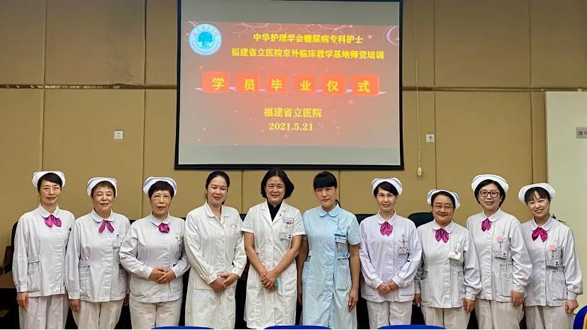 近日,福建省立医院临床教学基地2021年中华护理学会重症、糖尿病专科护士(京外)培训结业仪式顺利举行。党委副书记李红教授,护理部陈晓欢主任、金爽副主任、钱丹萍督导、陈美榕督导,重症、糖尿病护理专科组长及骨干参加仪式,来自省内外的培训学员顺利通过各项实践培训及考核。