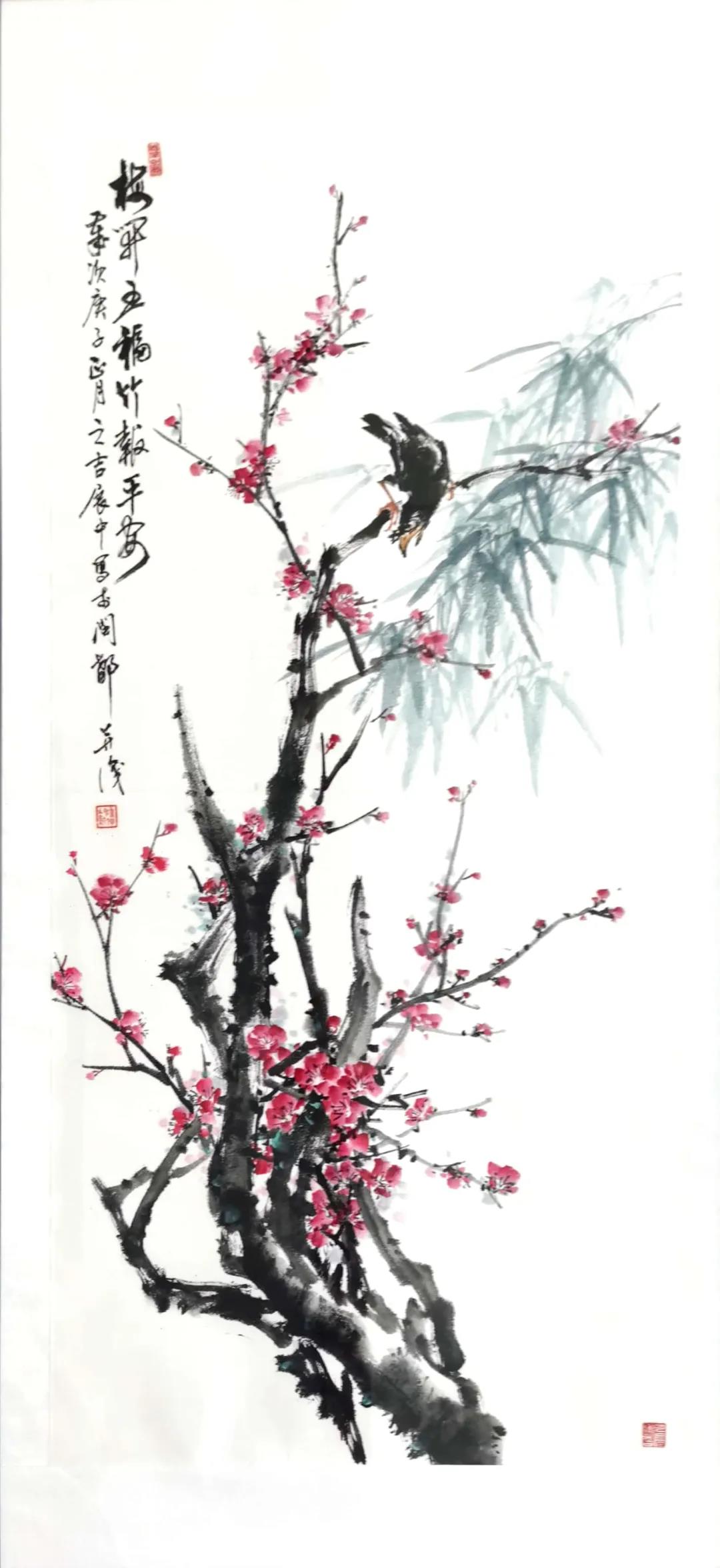 《梅开五福竹报平安》