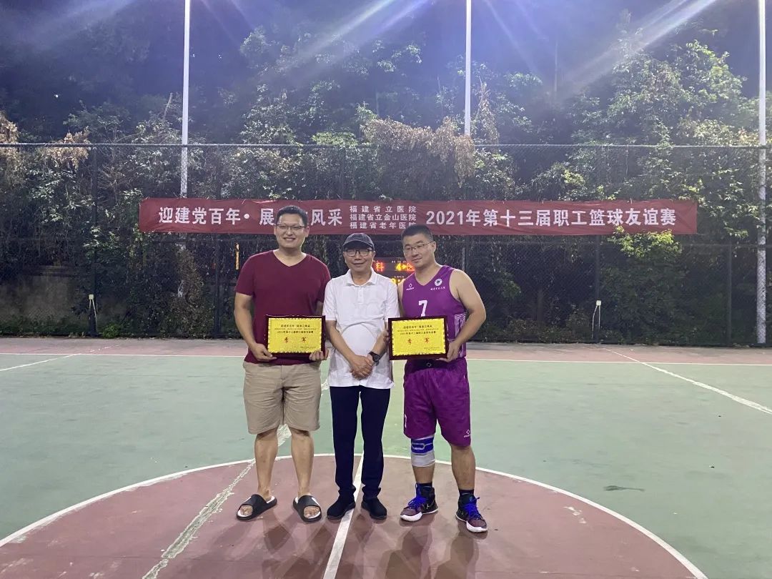 7月18日,“迎建党百年·展省立风采”职工篮球赛迎来了冠亚军争夺战及定点三分投篮赛,院领导朱鹏立、李红现场观赛。经过火热交锋,外科联队摘得桂冠,医技联队荣获亚军,急救中心队、内科联队荣获季军;神经外科高子威获封定点三分投篮赛“三分王”。