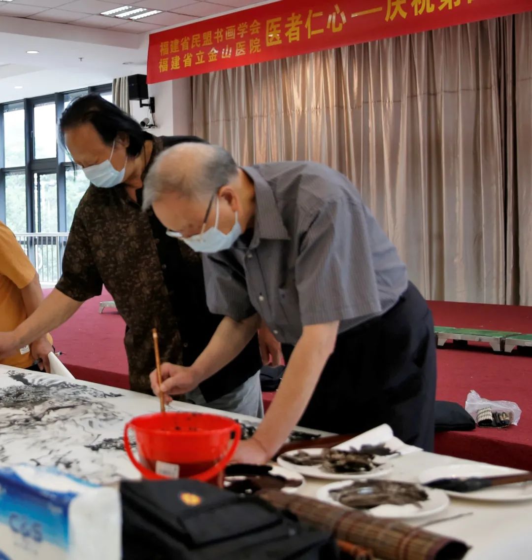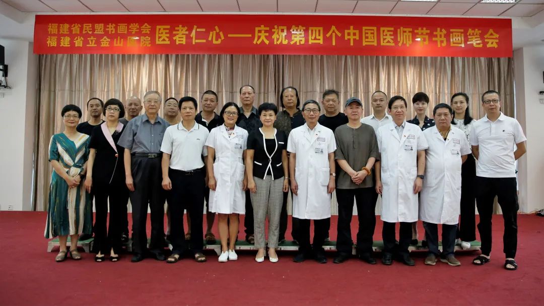 为庆祝第四个“中国医师节”,近日,由福建省民盟书画学会联合福建省立金山医院共同举办的“医者仁心——庆祝第四个中国医师节书画笔会”活动在省立金山医院举行。院领导朱鹏立、李红、郑铭、姜锋出席活动,临床医技科室主任、医护代表,民盟医务人员代表等参会。