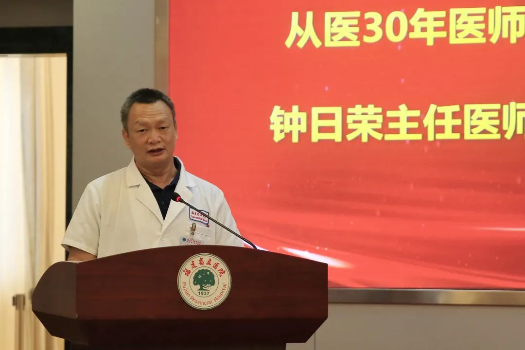 钟日荣主任医师作为从医30年医师代表发言,他深情抒发自己从医30年的理解与感悟,对医院、对前辈和同事、对病人和家属表达感谢。对他而言,竭尽全力后的踏实,病人转危为安时的欣慰,掌握新知识新技术的满足,与同事们同舟共济时的感动,就是他行医路上最大的收获与动力。