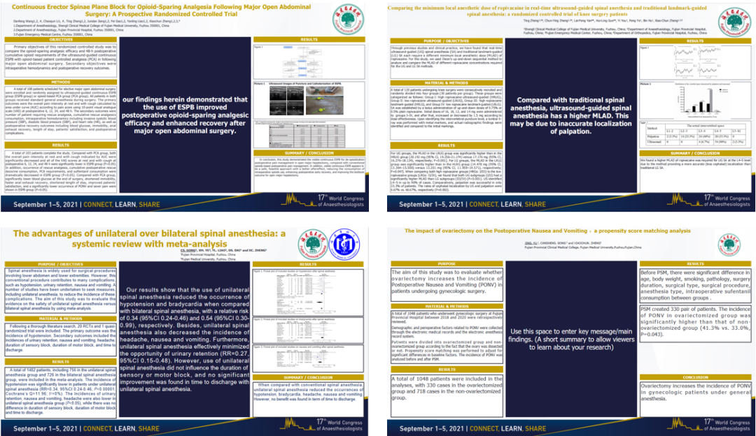 【省立科研】福建省立医院郑晓春教授团队学术论文获评2021年世界麻醉学术年会最佳壁报