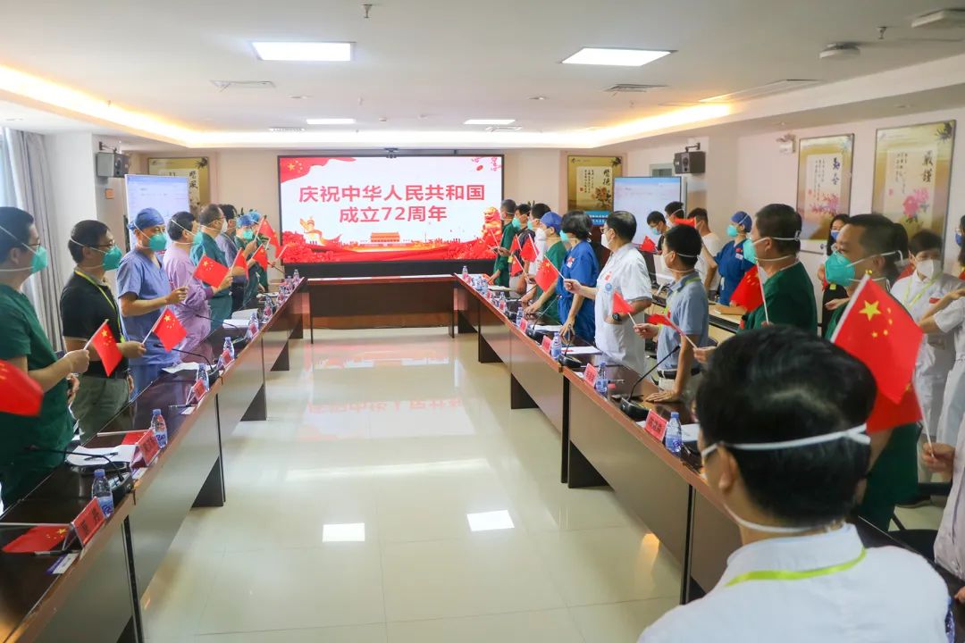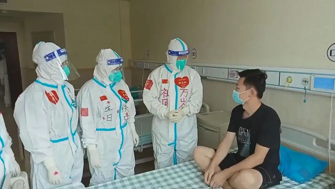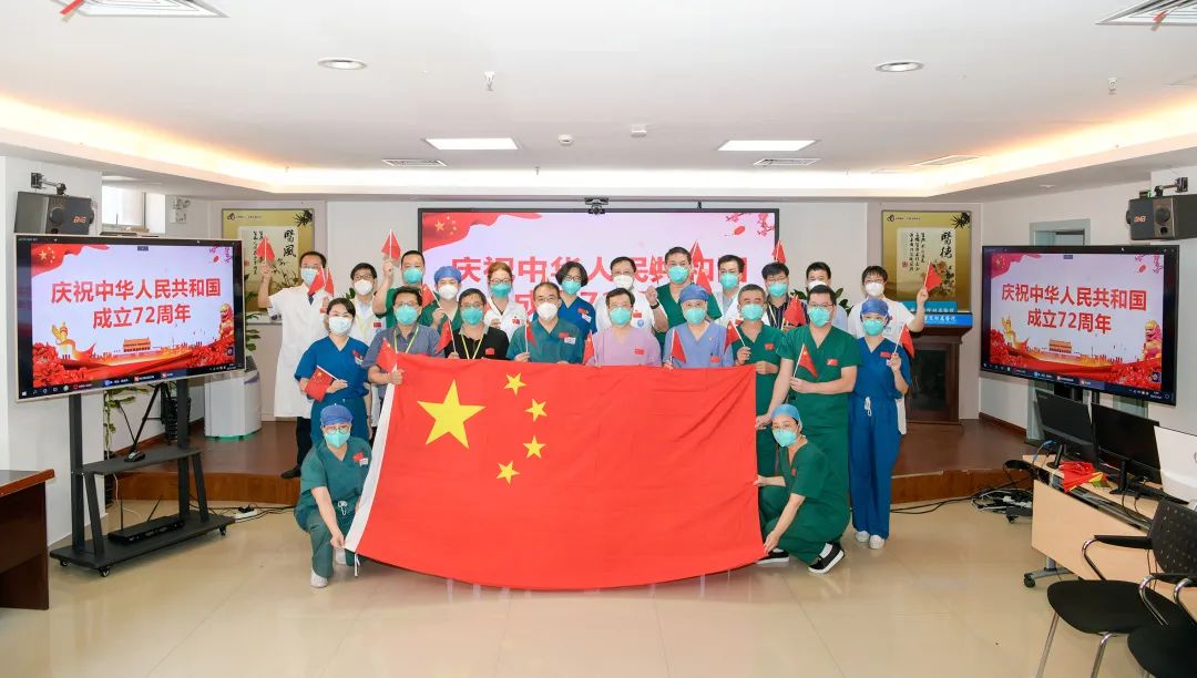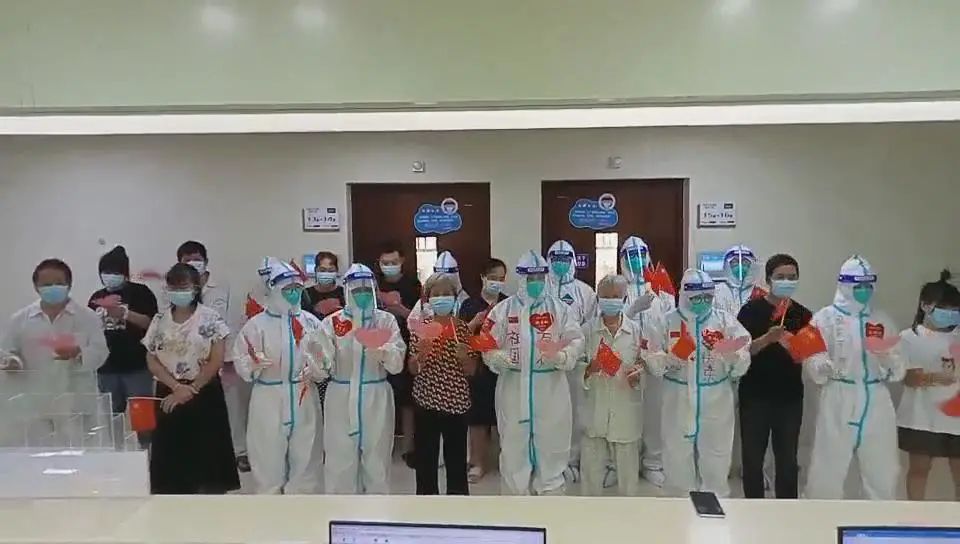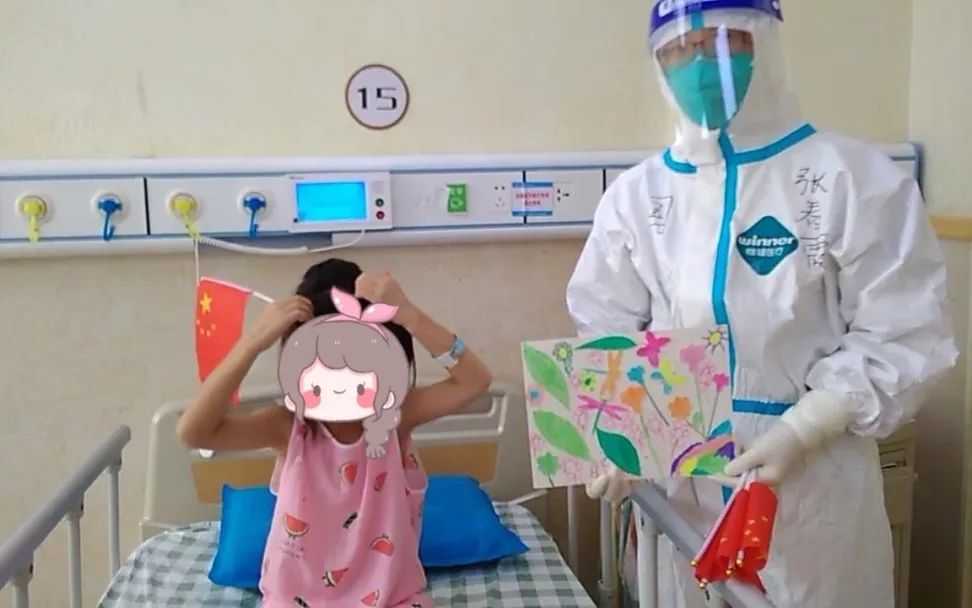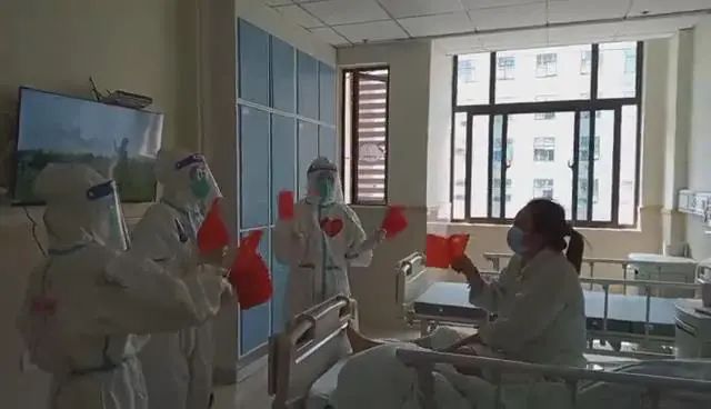 ▲与隔离病房患者一同喜迎国庆