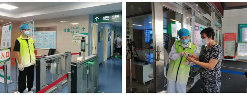 医院服务志愿者由门诊部统一规范培训后,分布到各岗位开展志愿服务:查验健康码、体温检测、协助自助机使用引导。面对患者的各类咨询,志愿者们耐心地一一给予回复,并作出相应指引。为了让患者能快速便捷就医,大家利用休息时间熟记《门诊志愿服务常见问答》手册内容,服务好每一位患者,尤其对于老龄患者,启用智慧助老,指导老年人跨越“数字鸿沟”,协助预约、缴费、就诊,使得来院就医时间缩短了,流程大大简化,效率提高不少……在常态化疫情防控中,志愿者们尽己所能为患者保驾护航,让他们安心、放心。