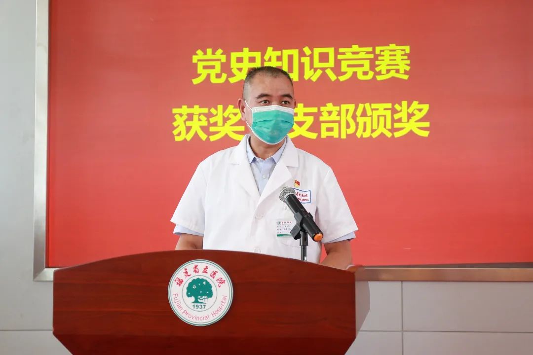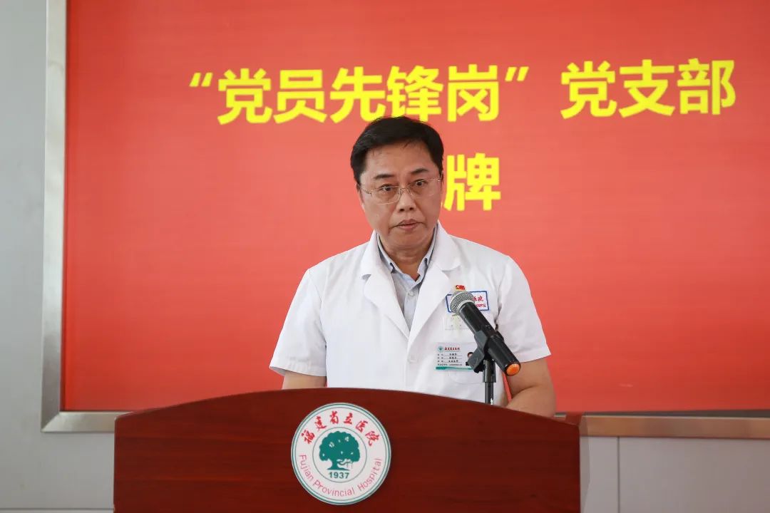 ▲孙保华同志宣读《中共福建省立医院委员会关于授予重症医学三科等党支部“党员先锋岗”的决定》
