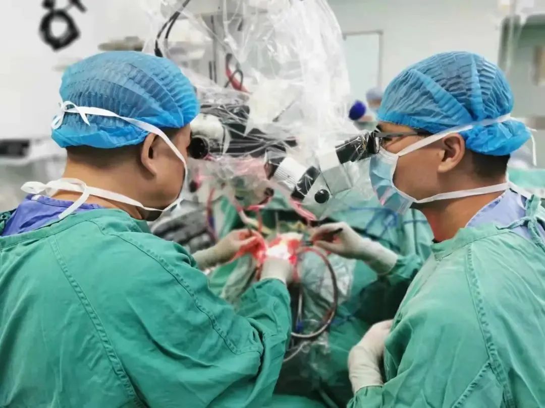 患者动脉瘤瘤体较大,不规则,瘤颈宽,瘤体有小动脉分支且供应重要功能区,通过介入手术治疗难度较大,发生功能区梗死的可能性大,一旦发生分支血管闭塞,患者将遗留很大后遗症。为尽可能挽救患者功能,避免患者术后出现偏瘫、失语等后遗症,辛惠宁与神经外科主任王军、副主任医师董举峰、马金福等充分讨论手术方案,决定实施开颅动脉瘤夹闭术。术前,神经外科团队仔细阅片,制定手术方案,考虑术中的难点、要点,经过严密的术前准备,一场与生命赛跑的手术即刻展开,在手术过程中,由辛惠宁、董举峰共同主刀,术中精细操作,仔细分离血管、神经,精准找到动脉瘤并完美夹闭,术后造影提示分支血管完整保留,患者无后遗症,手术成功。
