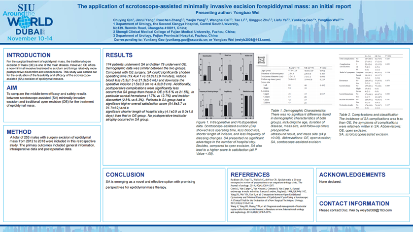 近日,被誉为泌尿外科界顶级盛会的“第41届国际泌尿外科学会(SIU)年会”召开。我院泌尿外科团队受邀在线参会,在学科带头人叶烈夫教授、朱庆国主任医师的领衔下,团队5篇论文入选并进行壁报交流。