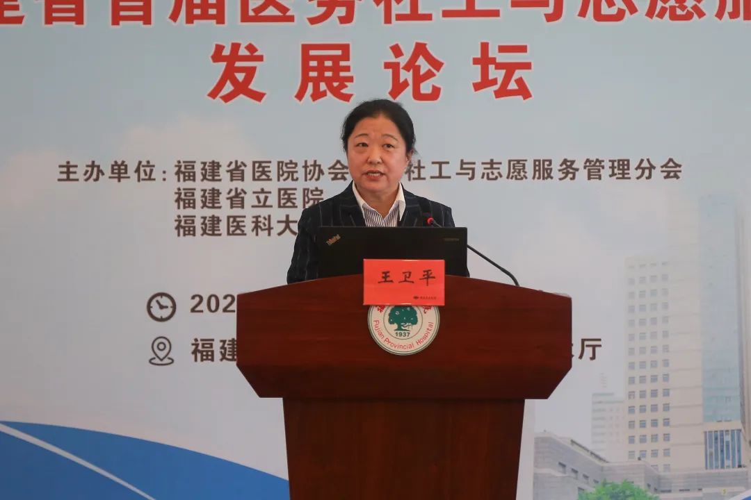 福建省首届医务社工与志愿服务发展论坛由福建省立医院、福建省医院协会医务社工与志愿服务管理分会、福建医科大学健康学院共同主办,以“线上+线下”相结合的形式举行。我院党委书记、院长朱鹏立,党委副书记李红,上海儿童医学中心党委书记、中国医院协会医院社会工作暨志愿服务委员会主任委员季庆英教授,福建医科大学健康学院院长刘豫瑞教授,福建医科大学健康学院、福建省社会工作联合会医务社工专委会主任委员王卫平教授,上海儿童医学中心社工部主任陈玉婷等出席论坛开幕式。