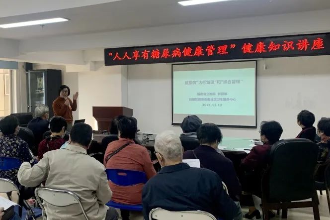 联合国糖尿病日期间,我院糖尿病护理专科前往鼓楼区南街街道社区卫生服务中心,为社区居民开展健康知识讲座。林丽娜副护士长结合今年糖尿病日宣传主题及最新版糖尿病防治指南内容,为居民讲解如何做好糖尿病的达标管理及综合管理,教大家如何用手掌快速计算食物重量。