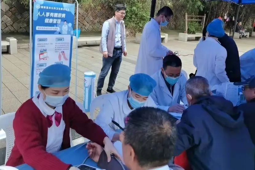 同时,两院糖尿病专科护理团队、医疗团队还分别参加由省护理学会组织的文化宫社区义诊活动及由福州市卫生健康委、鼓楼区卫生健康局主办的糖尿病日义诊活动,现场为群众监测血糖、血压、指点迷津。