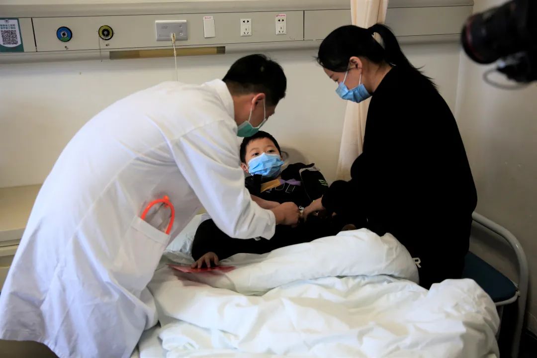 ▲为患儿复查身体