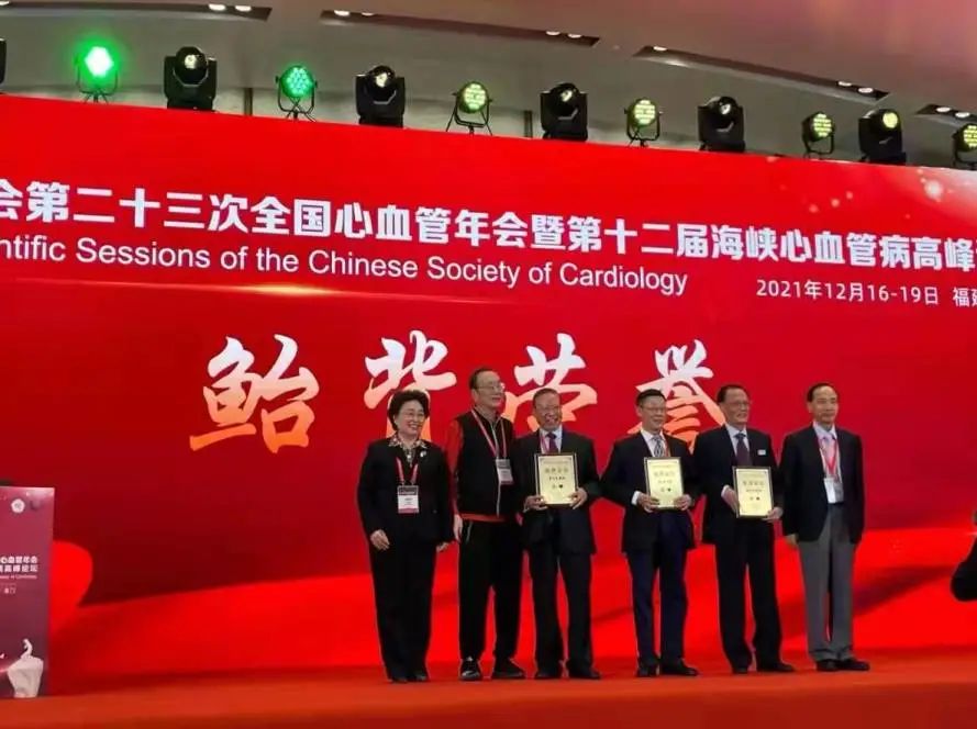 ▲心血管内科“鲐背荣誉”获得者颜光烈教授(右二)上台领奖