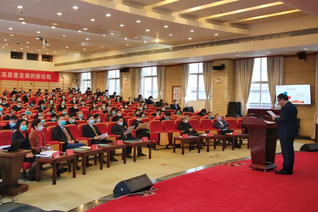 初心筑梦,春华秋实。1月25日,福建省立医院、省立金山医院2021年工作总结表彰会议在国际学术厅举行。院领导,临床、医技、行政职能科室负责人代表,各民主党派代表,老领导、老专家代表,获奖员工代表现场参会,两院区各科室通过视频直播参加会议。党委书记、院长朱鹏立作2021年医院工作报告,部署2022年重点工作。会议由陈锋副院长主持。
