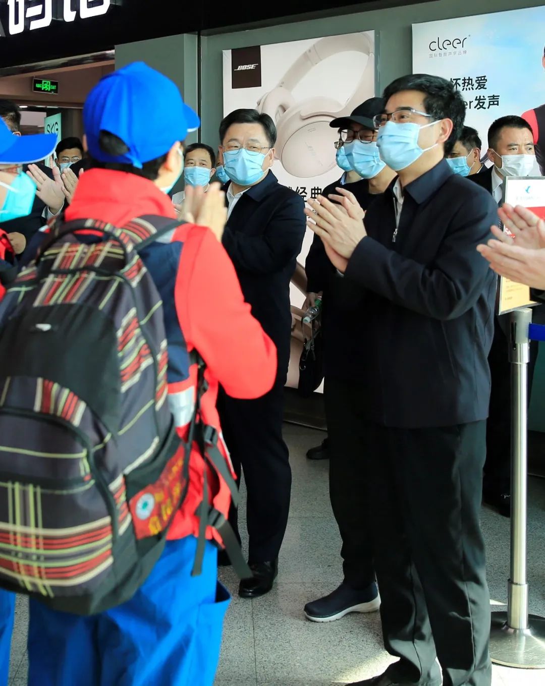 ▲省政府林文斌副省长等领导在登机口为队员送行