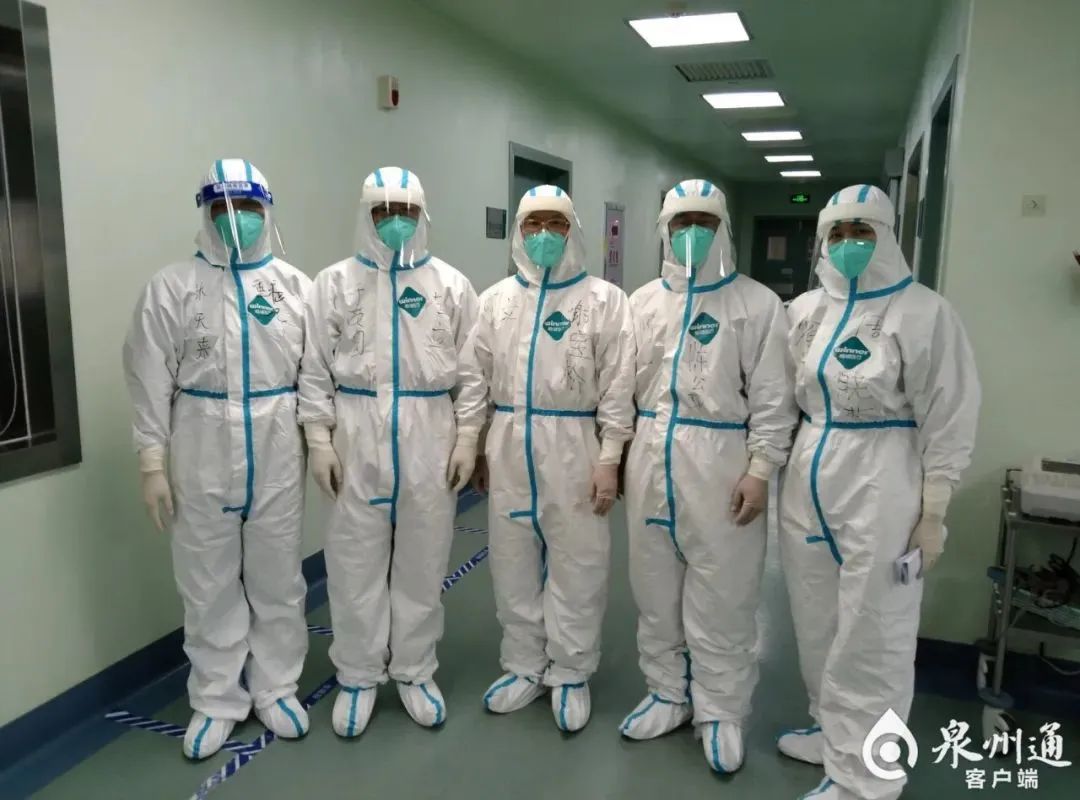 ▲谢宝松(左三)在泉州市第一医院城东分院参与疫情防控医疗救治工作