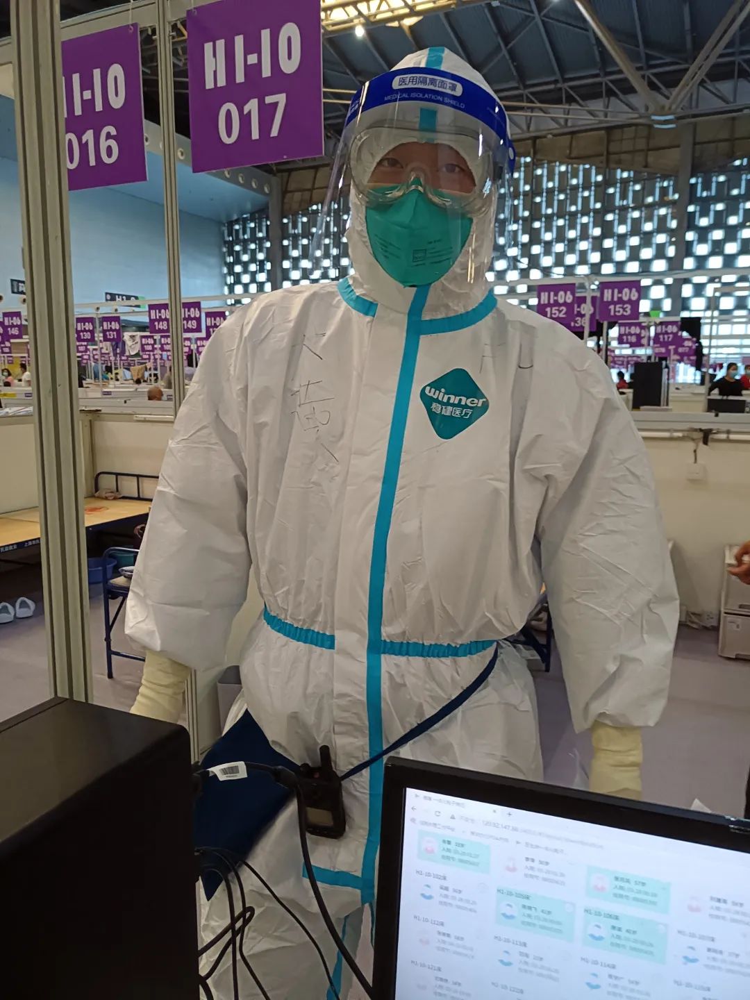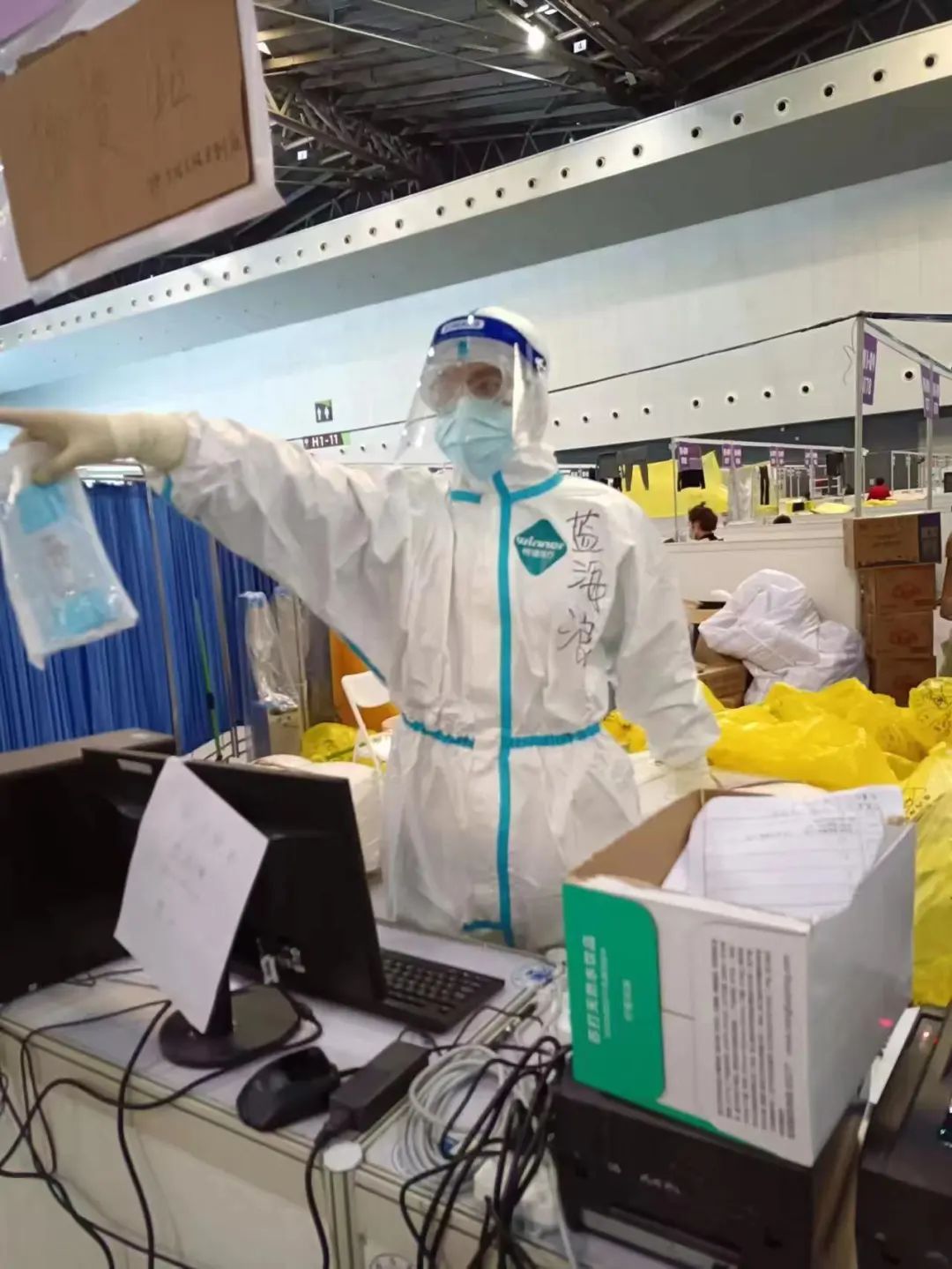 带着这种想法,两人经过半个多小时的抢运,终于将所有物资及时转运到场馆仓库。当他们脱下防护服时,才发现自己贴身穿的衣服早已被汗水浸透。