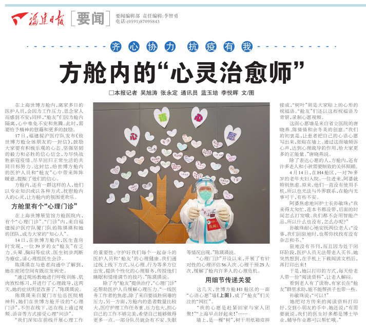 这几天,世博方舱H1舱区的一面“心语心愿”墙,成了“舱友”们关注的“网红”。