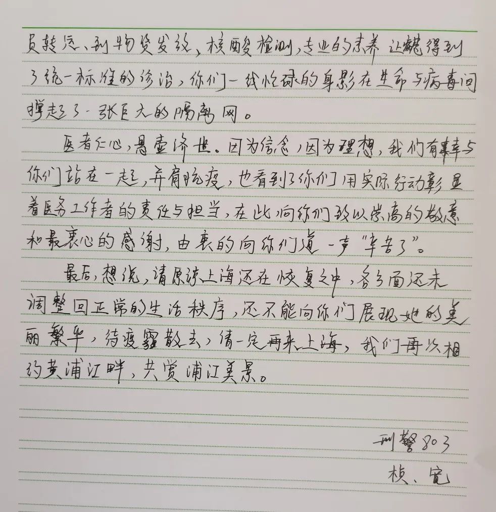 日前,在上海世博方舱医院休舱之际,福建省立医院援沪医疗队员与“刑警803”增援民警之间互留亲笔书信,让我们一同感受警医携手碰撞出令人动容的战友情谊。