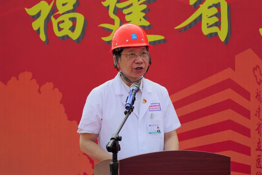 封顶仪式在福建省立金山医院举行,福建省立医院党委书记、院长朱鹏立等在家院领导、老专家,临床医技、行政后勤科室主任、护士长,医护人员、施工单位、监理单位代表参加仪式,共同见证这一历史时刻。仪式由福建省立金山医院院长郑铭主持。