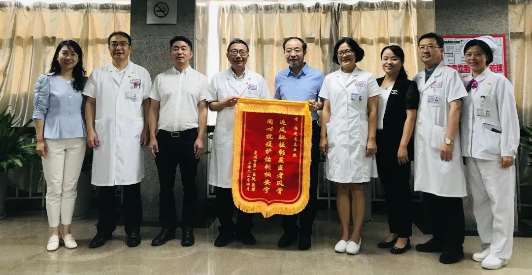 ▲泉州市一向我院赠送“逆风驰援彰显医者风骨 同心抗疫护佑刺桐安宁”锦旗