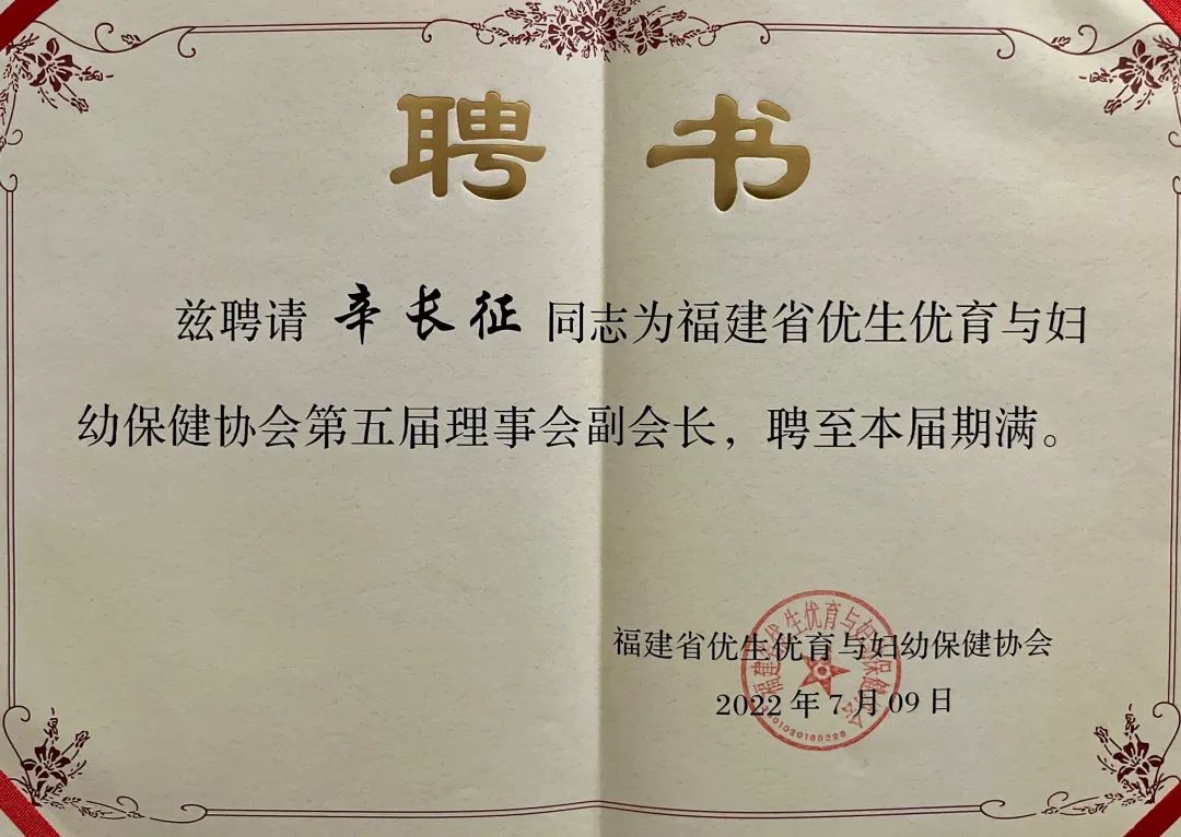 近日,在福建省优生优育与妇幼保健协会会员代表大会上,我院金山院区妇产科辛长征主任医师,作为综合性医院代表,当选协会第五届理事会副会长,会长为福建省卫生健康委妇幼处处长周策。