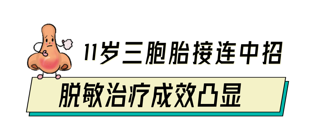 坚持治疗一段时间后,亮亮的喷嚏少了,胃口变好了,睡眠深了,脱敏治疗的频率也延长至6周接受一次脱敏针剂注射即可。看着喜人的效果,妈妈又陷入了担忧,该不会亮亮的两个兄弟也患上了鼻炎?于是接连带着他们做了过敏原检查,果不其然,均是因为螨虫引起的过敏性鼻炎。目前,亮亮三兄弟经过脱敏治疗,症状明显好转。