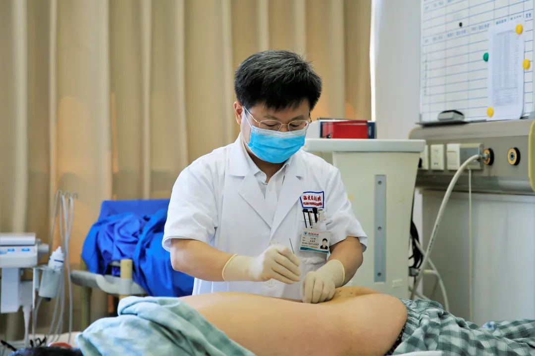 ▲刘荣国正在施行银质针治疗