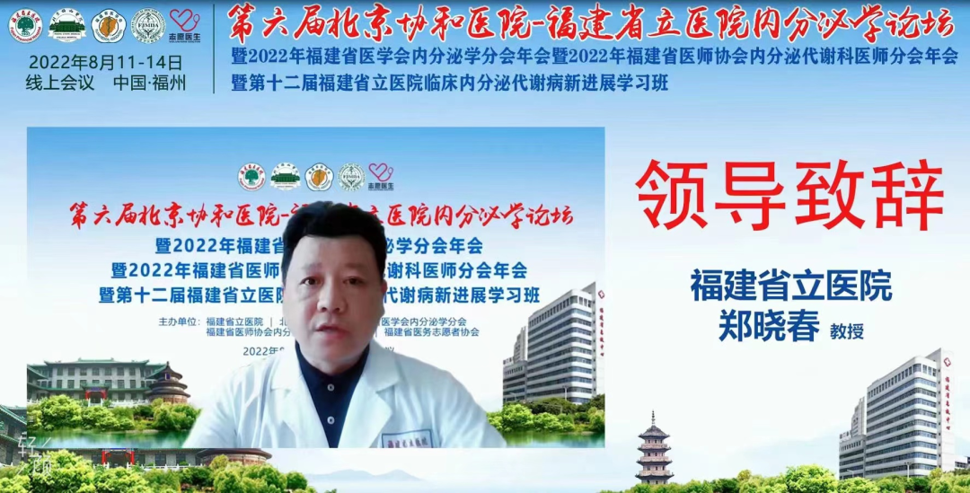 近日,由北京协和医院、福建省立医院、福建省医学会内分泌学分会、福建省医师协会内分泌代谢科医师分会共同主办的“第六届北京协和医院-福建省立医院内分泌学论坛”“第十二届临床内分泌代谢病新进展学习班”“2022年福建省医学会内分泌学分会年会”“2022年福建省医师协会内分泌代谢科医师分会年会”顺利举办。