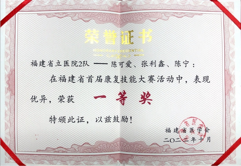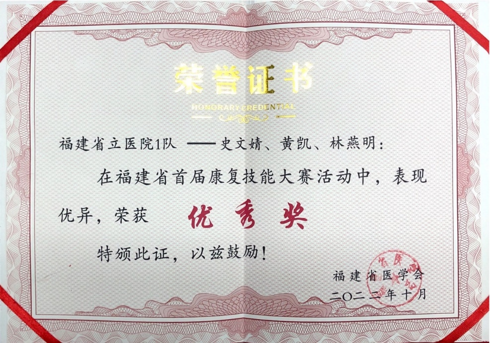 康复科行政主任黄炼红表示,此次获奖充分展现我院康复科团队精湛的专业技能水平和以患者为中心的理念。今后,团队将继续为患者提供更优质、便捷的服务,为守护八闽百姓健康贡献力量。