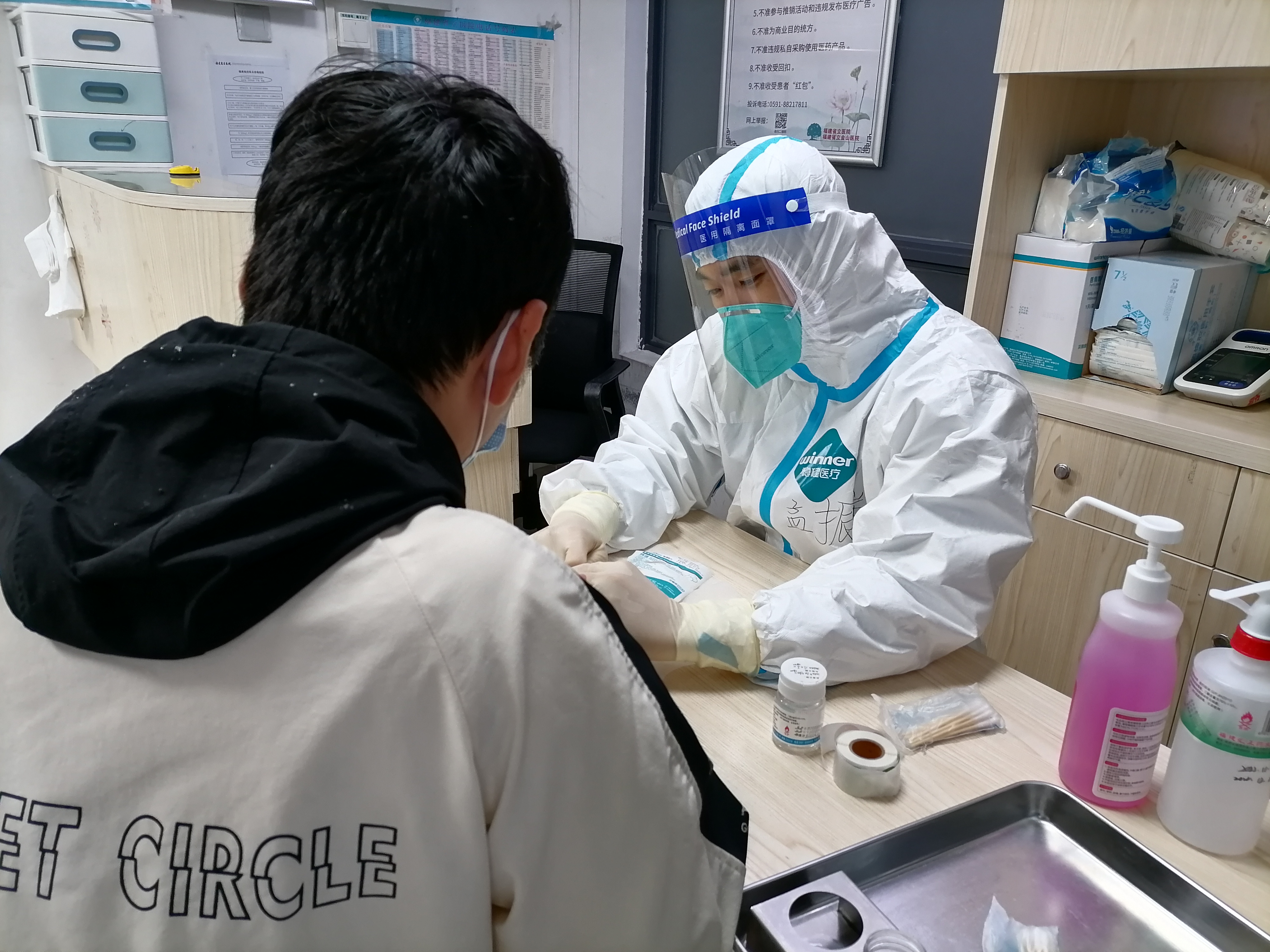住院部作为医院医疗的一个重要环节,做好疫情防控这根弦一直是紧绷着的,不容丝毫放松。眼科医护人员,快速响应,支部党员更是冲锋在前。启动隔离病房、病区封控、全面消杀、做好个人防护等,各项精准防控的措施很快就在医务部、医院感染管理部、后勤保障中心等各部门的密切配合下,有序落实。突如其来的封控,在医护们耐心的沟通解释下,也得到了患者和家属们的理解和支持。