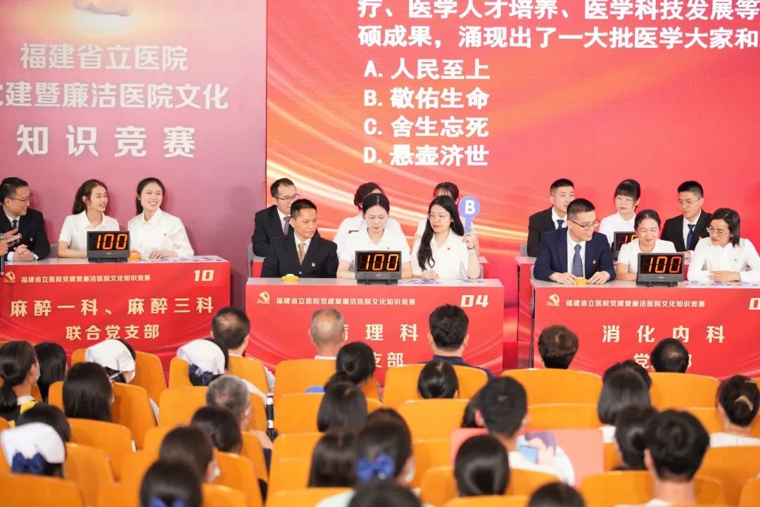 为贯彻落实党的二十大精神,深入推进习近平新时代中国特色社会主义思想主题教育,持续引导医务工作者学廉守廉倡廉,6月21日下午,福建省立医院党建暨廉洁医院文化知识竞赛总决赛正式开赛!参赛选手齐心协力、“火”力全开,用饱满的精神状态抒发着对党的忠诚,现场气氛热烈,掀起全院党员的学习热潮。