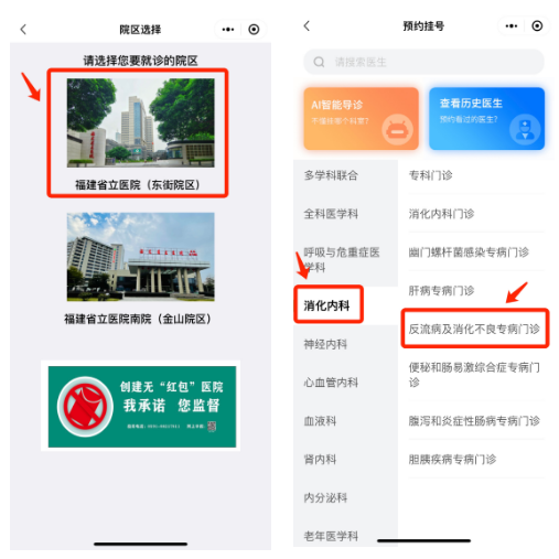 有需要的患者可通过福建省立医院公众号,点击消化内科——反流病及消化不良专病门诊——选择相应医生进行预约,提出申请。