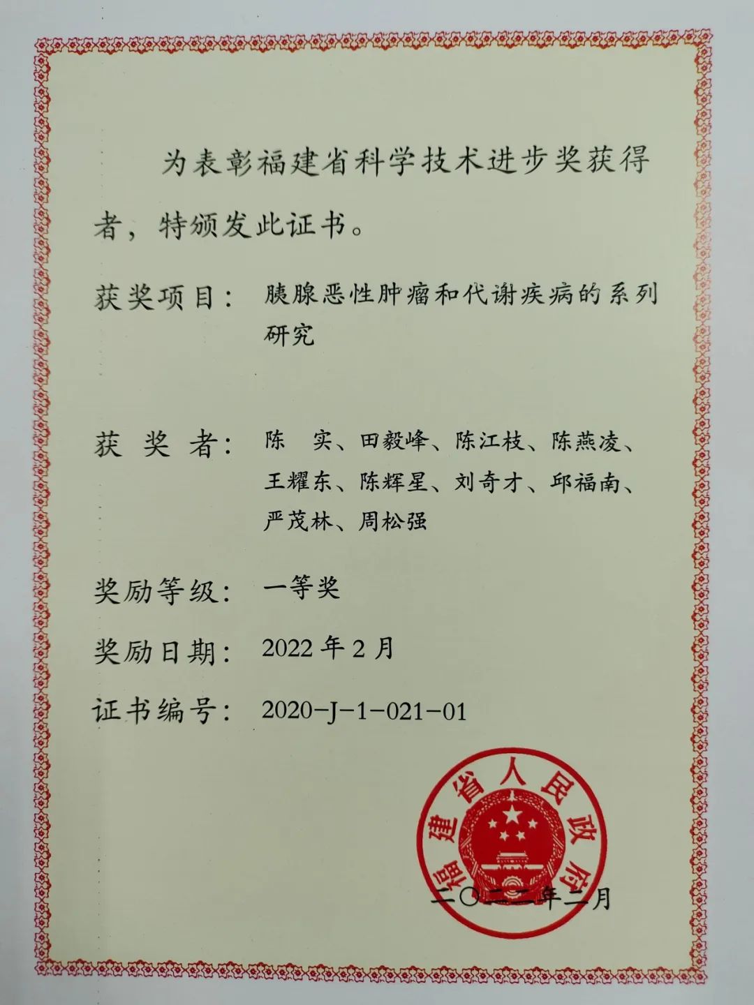 ▲获省科学技术进步奖一等奖