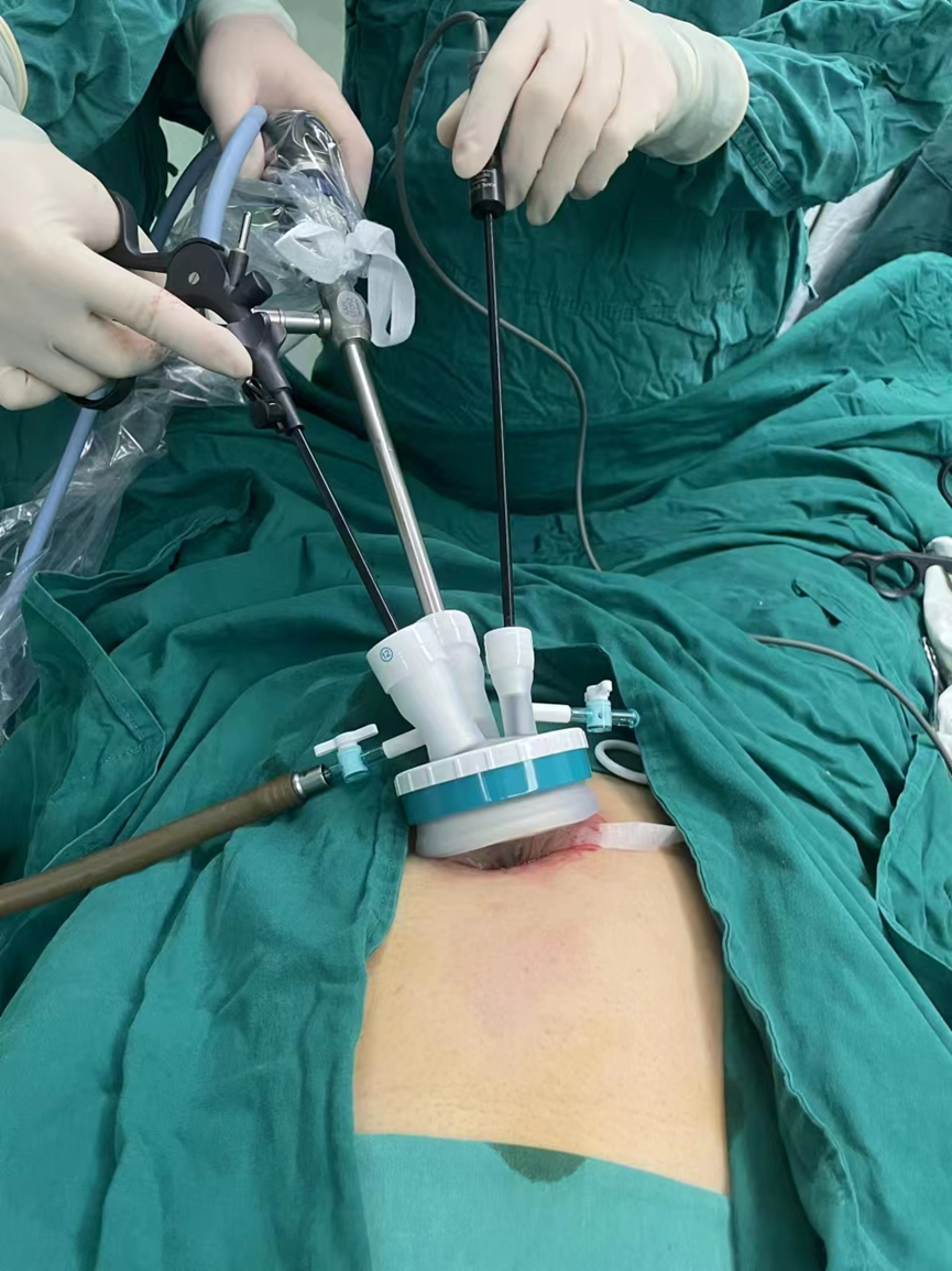 ▲团队进行单孔腹腔镜手术