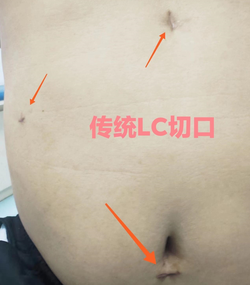 ▲传统腹腔镜胆囊切除术切口