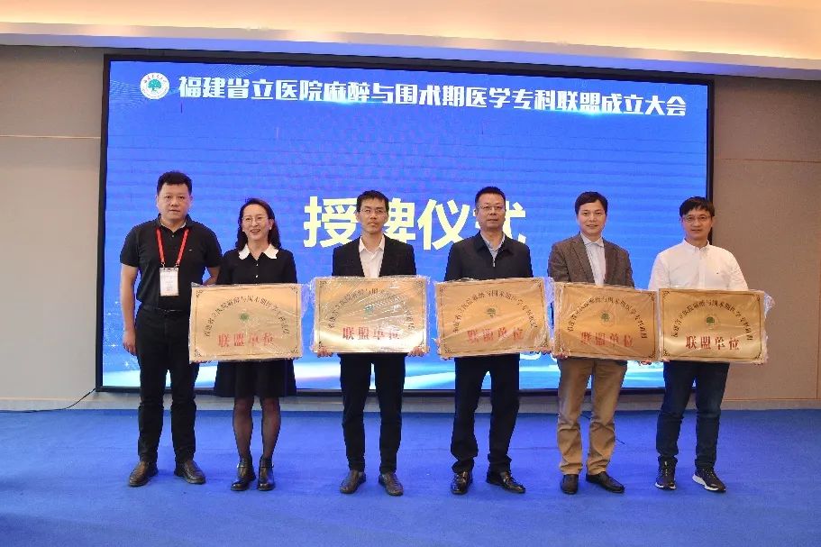 近日,福建省首个麻醉与围术期医学专科联盟在福州成立。联盟由福建省立医院牵头,全省首批39家医院加入。我院院领导郑晓春教授出席成立大会并为联盟医院授牌,会议由麻醉一科主任蒋俊丹主持。
