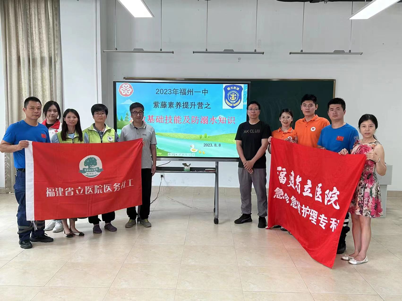 8月8日上午,福建省立医院医务社工与志愿者服务站组织我院青年文明号集体、急诊急救护理专科进校园,联合曙光救援队在福州一中开展防溺水救援应急演练、急救基本技能及青少年防溺水公益宣传培训活动。