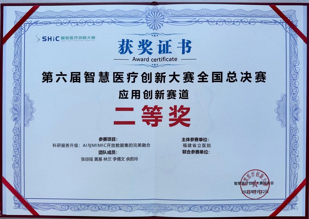近日,在2023数字健康创新大会暨第六届智慧医疗创新大赛全国总决赛上,我院信息管理中心团队参赛项目《科研服务升级:AI与MIMIC开放数据集的完美融合》在激烈角逐中,以完美的表现脱颖而出,收获全国总决赛二等奖及最具发展潜力奖的佳绩。