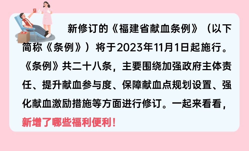 【省立公益】《福建省献血条例》将于11月1日施行,献血者新增哪些优待?