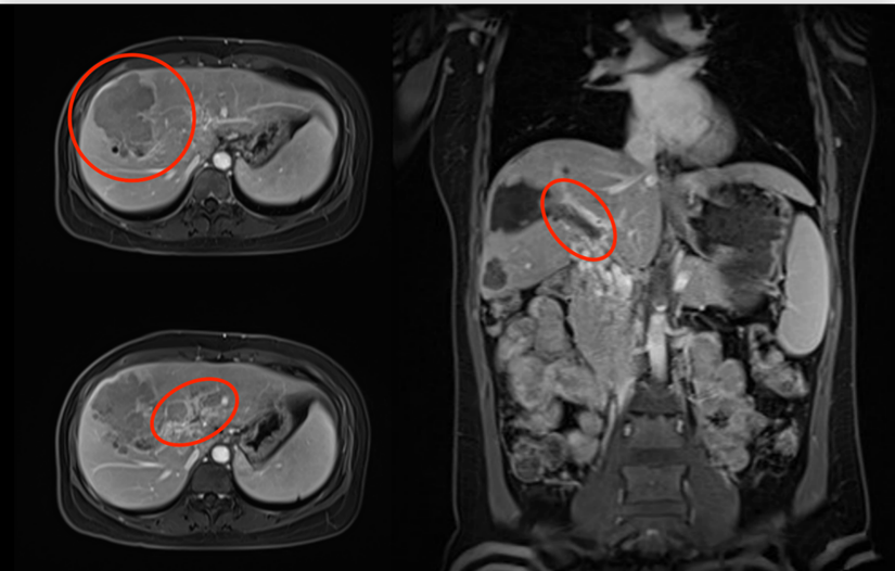 刚30岁出头的年轻妈妈刘女士(化名),因上腹部疼痛,一次就诊时被告知患上了肝癌。我院肝胆胰外科严茂林团队接诊后,经过进一步检查,确诊刘女士为“肝癌伴门静脉主干癌栓”。由于患者已进展为晚期肝癌,如果不经过治疗,可能很快就会出现黄疸、腹水,预计生存时间仅剩3~6个月。